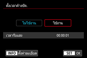 โปรดทราบว่าระบบตั้งเวลาค้างชัตเตอร์สามารถตั้งค่าได้และจะมีผลเฉพาะในโหมด B (เปิดหน้ากล้องค้างชัตเตอร์) เท่านั้น