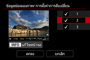 เลือก [ข้อมูลช่องมองภาพ/ การตั้งค่าการสับเปลี่ยน]