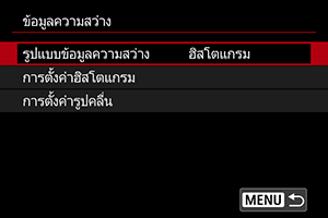 คุณสามารถตั้งค่ารูปแบบข้อมูลความสว่าง (ฮิสโตแกรมหรือจอคลื่น) ที่พร้อมใช้งานได้เมื่อมีการกดปุ่ม ในระหว่างการใช้โหมดสแตนด์บายถ่ายภาพ