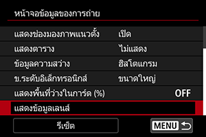 เลือก [แสดงข้อมูลเลนส์]