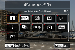- รายการที่แสดงบนหน้าจอควบคุมทันใจจะมีเครื่องหมายถูกกำกับไว้ รายการที่ไม่มีเครื่องหมายถูกจะถูกลบออก