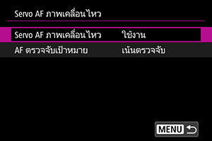 คุณสามารถระบุได้ว่าจะใช้ Servo AF ภาพเคลื่อนไหวหรือไม่ หากตรวจไม่พบเป้าหมายที่ตั้งค่าไว้ใน [: เป้าหมายที่ตรวจจับ] ()