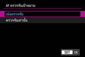 : เป้าหมายที่ตรวจจับ] เท่านั้น Servo AF ภาพเคลื่อนไหวจะหยุดลงหากตรวจไม่พบเป้าหมาย