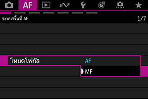 ตั้งโหมดโฟกัสไว้ที่ MF