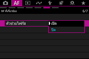 การเน้นสีจุดโฟกัสอาจออกมาไม่ชัดเจนภายใต้การตั้งค่าดังนี้ ตั้งค่า [