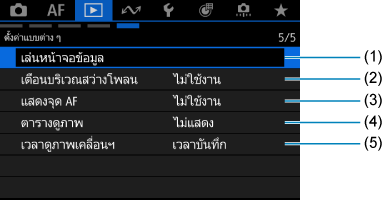 - (1) เล่นหน้าจอข้อมูล