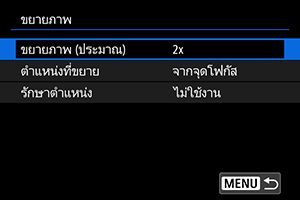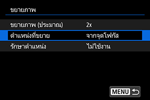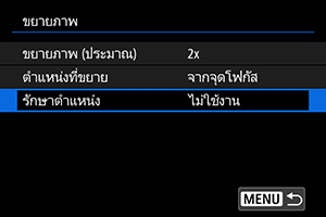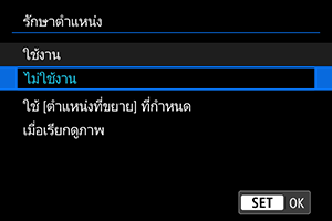 คุณสามารถกำหนดได้ว่าจะรักษาตำแหน่งเดิมสำหรับมุมมองแบบขยายหรือใช้ตำแหน่งที่ตั้งไว้ใน [ตำแหน่งที่ขยาย] เมื่อแสดงภาพที่ตามมา