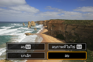 คุณสามารถเลือกลบภาพที่ไม่จำเป็นแต่ละภาพหรือลบทั้งกลุ่มได้ ภาพที่ได้รับการป้องกัน () จะไม่ถูกลบ