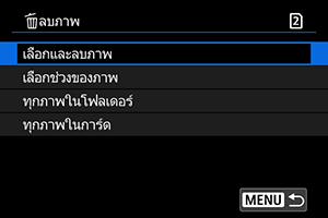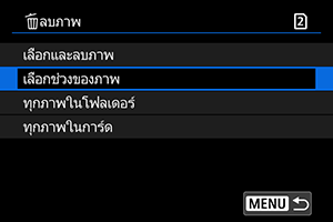 • เลือก [เลือกช่วงของภาพ] ใน [การเล่นภาพ: ลบภาพ]