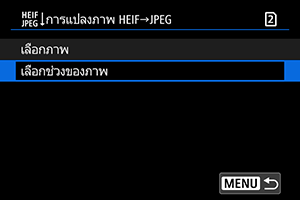 คุณสามารถแปลงภาพ HEIF ที่ถ่ายในการถ่ายภาพแบบ HDR และบันทึกเป็นภาพ JPEG ได้