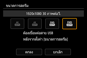 - ใช้งาน [เปิด] ไม่ได้เมื่อตั้งค่า [ขนาดการสตรีม] เป็น [
