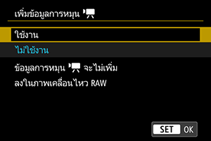 - ไม่มีการเพิ่มข้อมูลทิศทางภาพเคลื่อนไหวเมื่อตั้งค่า [