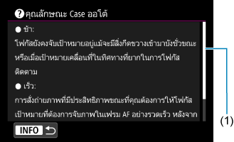 เมื่อ [ วิธีใช้] แสดงขึ้น คุณสามารถแสดงคำอธิบายของคุณสมบัติได้โดยกดปุ่ม