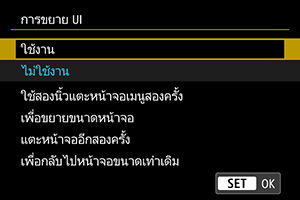 คุณสามารถขยายหน้าจอเมนูได้โดยการแตะสองครั้งด้วยสองนิ้ว แตะสองครั้งอีกครั้งเพื่อคืนค่าขนาดที่แสดงดั้งเดิม