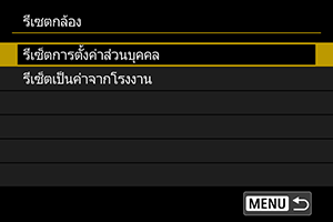 1. เลือก [การตั้งค่า: รีเซตกล้อง] ()