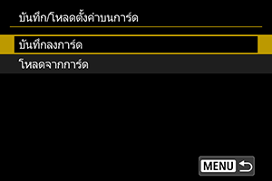 การบันทึก/การโหลดการตั้งค่ากล้องบนการ์ด