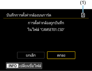 - สามารถบันทึกไฟล์การตั้งค่ากล้องลงในการ์ดได้ถึงสิบไฟล์ หากการ์ดมีไฟล์ข้อมูลการตั้งค่ากล้องสิบไฟล์แล้ว ให้เขียนทับไฟล์ที่มีอยู่หรือใช้การ์ดอื่น