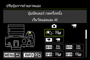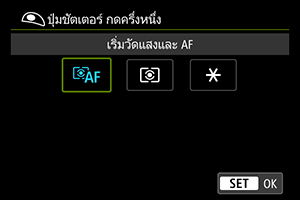 ระบุฟังก์ชั่นที่ทำงานโดยการกดปุ่มชัตเตอร์ลงครึ่งหนึ่ง