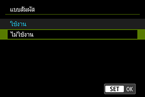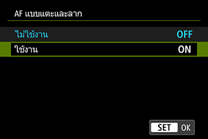 เลือก [ใช้งาน] เพื่อเปิดใช้งาน AF แบบแตะและลาก