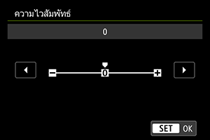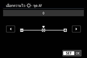 สำหรับการวางตำแหน่งจุด AF ที่เร็วขึ้น ให้ตั้งค่าไปทางด้านบวก และสำหรับการวางตำแหน่งที่ช้าลง ให้ตั้งค่าไปทางด้านลบ