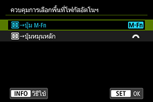 คุณสามารถตั้งค่าการเปลี่ยนวิธีการเลือกพื้นที่ AF ได้
