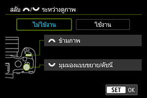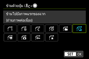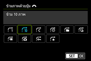 หากต้องการตั้งค่าวิธีที่กล้องจะข้ามภาพ คุณสามารถหมุนปุ่มหมุน ในขณะที่กดปุ่มที่กำหนดให้กับ [