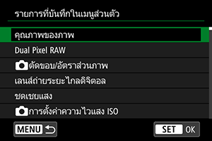 เลือก [รายการที่บันทึกในเมนูส่วนตัว]
