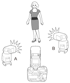 Alıcılar A ve B patlama gruplarına ayrılabilir ve bunlar arasında aydınlatma dengesini (flaş oranı) ayarlayabilirsiniz.