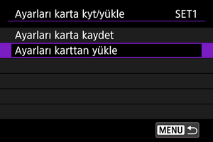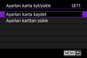 [Ayarları karta kyt/yükle] seçimi yapın.