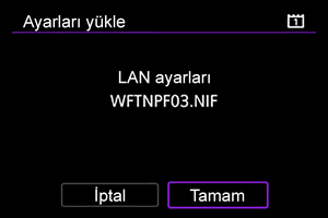 - En fazla 40 ayar dosyası listelenebilir. Bundan daha fazla dosya yüklemek için listelenemeyen dosyaları başka bir karta aktarın ve sonra yükleyin.