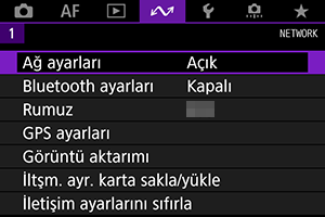 : Kam. ayarl. karta sakla/yükle] ile fotoğraf makinesindeki tüm iletişim ayarlarını bir karta kaydedebilir veya başka bir fotoğraf makinesine ait tüm iletişim ayarlarını bir karttan yükleyebilirsiniz.