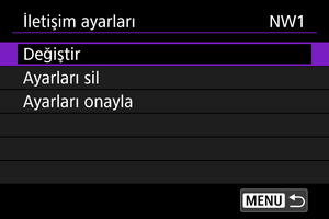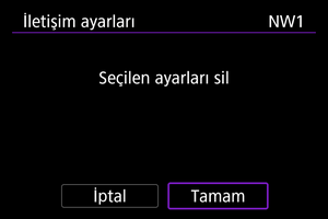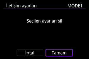 - [Seçileni temizle] seçildiğinde kayıtlı bağlantı ayarlarıyla iletişim ayarlarını siler. Onay ekranında [Tamam] seçimi yapın.