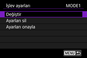 İşlev ayarlarını değiştirmek, eklemek veya silmek için seçin.