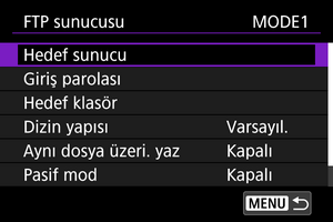 [FTP sunucusu] seçildiğinde FTP sunucusu ile bağlantılı ayarları yapılandırabilirsiniz.