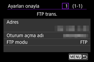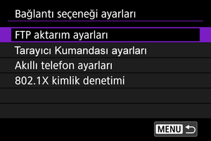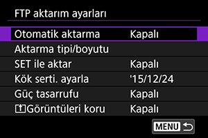 [FTP aktarım ayarları] seçildiğinde FTP aktarımı ve güç tasarrufu ile bağlantılı ayarları yapılandırabilirsiniz.