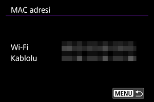 - [Wi-Fi] ve [Kablolu] için MAC adresleri görüntülenir.