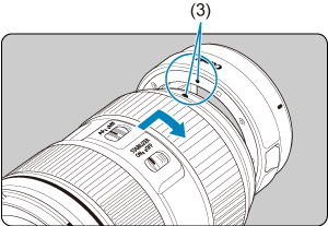 Adaptör çıkarma düğmesine basarken, lensi ok ile gösterildiği gibi çevirin.