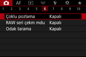 : Güç koruma] içindeki [Oto. kapanma] ile ayarlanan süre sonunda otomatik olarak etkinleşeceğini ve bunun da çoklu poz çekimini iptal edeceğini unutmayın.