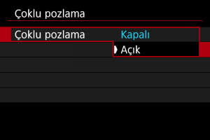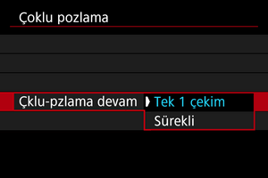 - [Sürekli] seçeneğinde çoklu poz çekimi 2. adımda [Kapalı] olarak ayarlanana kadar devam eder.