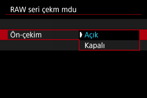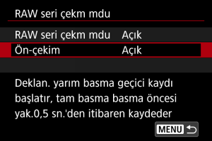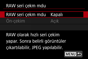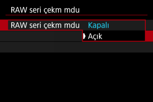 : RAW seri çekm mdu] ayarı [Kapalı] olur.