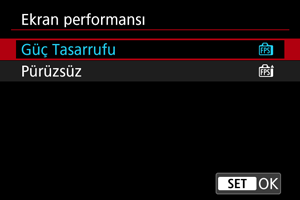 Fotoğraflar için çekim ekranı gösteriminde öncelik tanıyacağınız performans parametresini seçebilirsiniz.