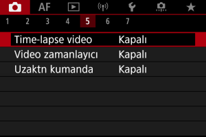 : Time-lapse video] seçeneğini [Kapalı] olarak, fotoğraf makinesini, arabirim kablosuyla bilgisayara bağladığınızda ve EOS Utility (EOS yazılımı) programını kullandığınızda ayarlayın. [Kapalı] dışındaki seçenekler belirlendiğinde, fotoğraf makinesi bilgisayar ile iletişime geçemez.