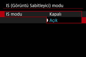 : IS (Görüntü Sabitleyici) modu] seçimi yapın.
