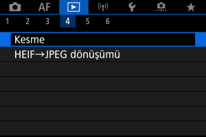 Çektiğiniz JPEG resmi kırpabilir ve başka bir görüntü olarak kaydedebilirsiniz. JPEG veya HEIF görüntüler için kırpma kullanılabilir. RAW görüntüler ve 4K videolardan çıkartılan kareler kırpılamaz.