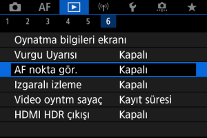 Odaklanmak için kullanılan, oynatma ekranında kırmızı kontur içinde görüntülenecek AF noktaları görüntüleyebilirsiniz.