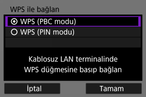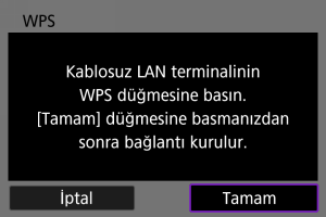 Bu bölümde WPS (PBC modu) uyumlu bir erişim noktası aracılığıyla Wi-Fi ağına nasıl katılabileceğiniz anlatılır.