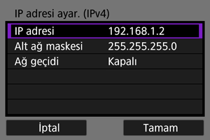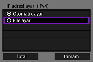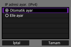 - [Otomatik ayar] ile ilgili bir hata meydana gelirse Manuel IP Adresi Ayarı konusuna bakın.