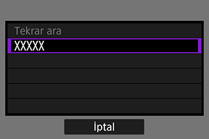 - Akıllı telefonun Wi-Fi ayarı ekranında, fotoğraf makinesi ekranında gösterilen SSID’ye (ağ adı) dokunun, sonra erişim noktası parolasını girerek bağlantı kurun.