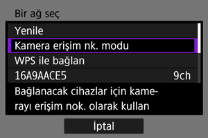 Fotoğraf makinesi erişim noktası modunda bağlantı mümkün değilse, aşağıdaki gibi bir bağlantı kurabilirsiniz.