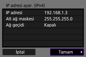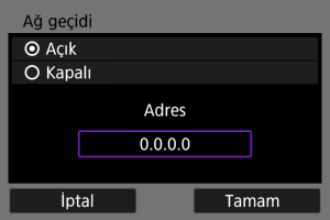 - Bir ağ geçidi kullanmak için [Açık] seçimi yapın, sonra [Adres] seçimi yapın.